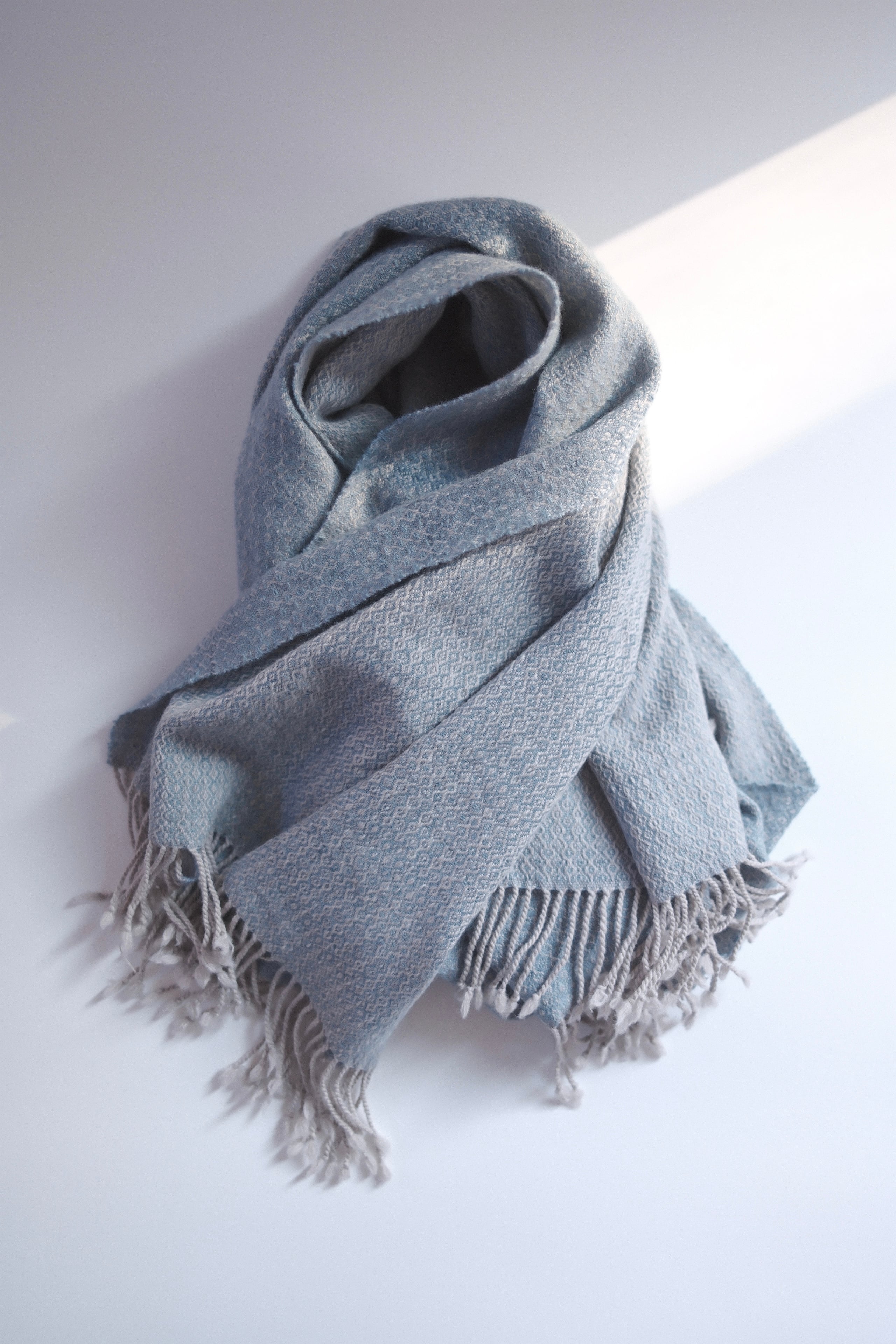 こちらはいつも製作しているシルク素材とは違い、ラムウールの糸で織り上げました。