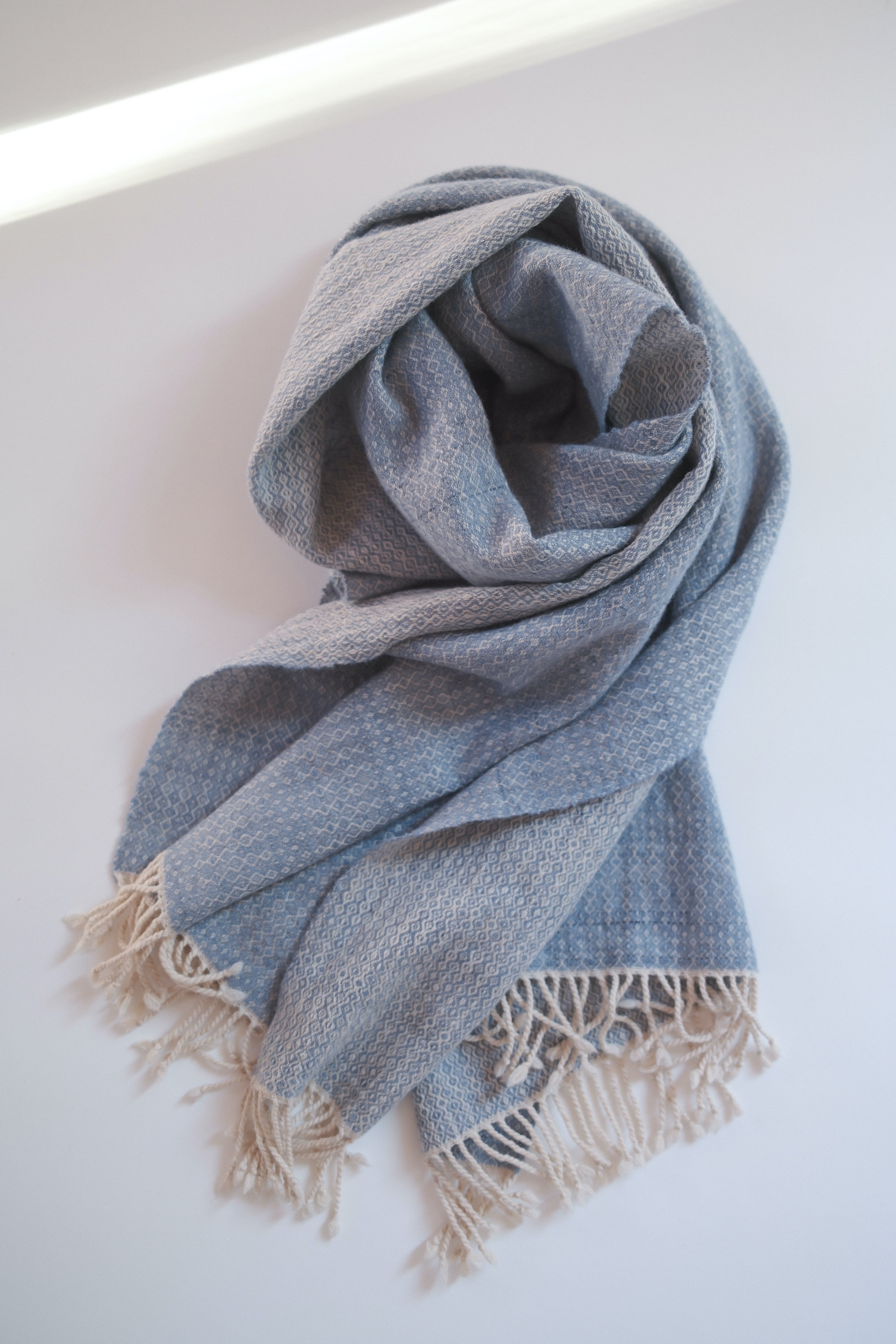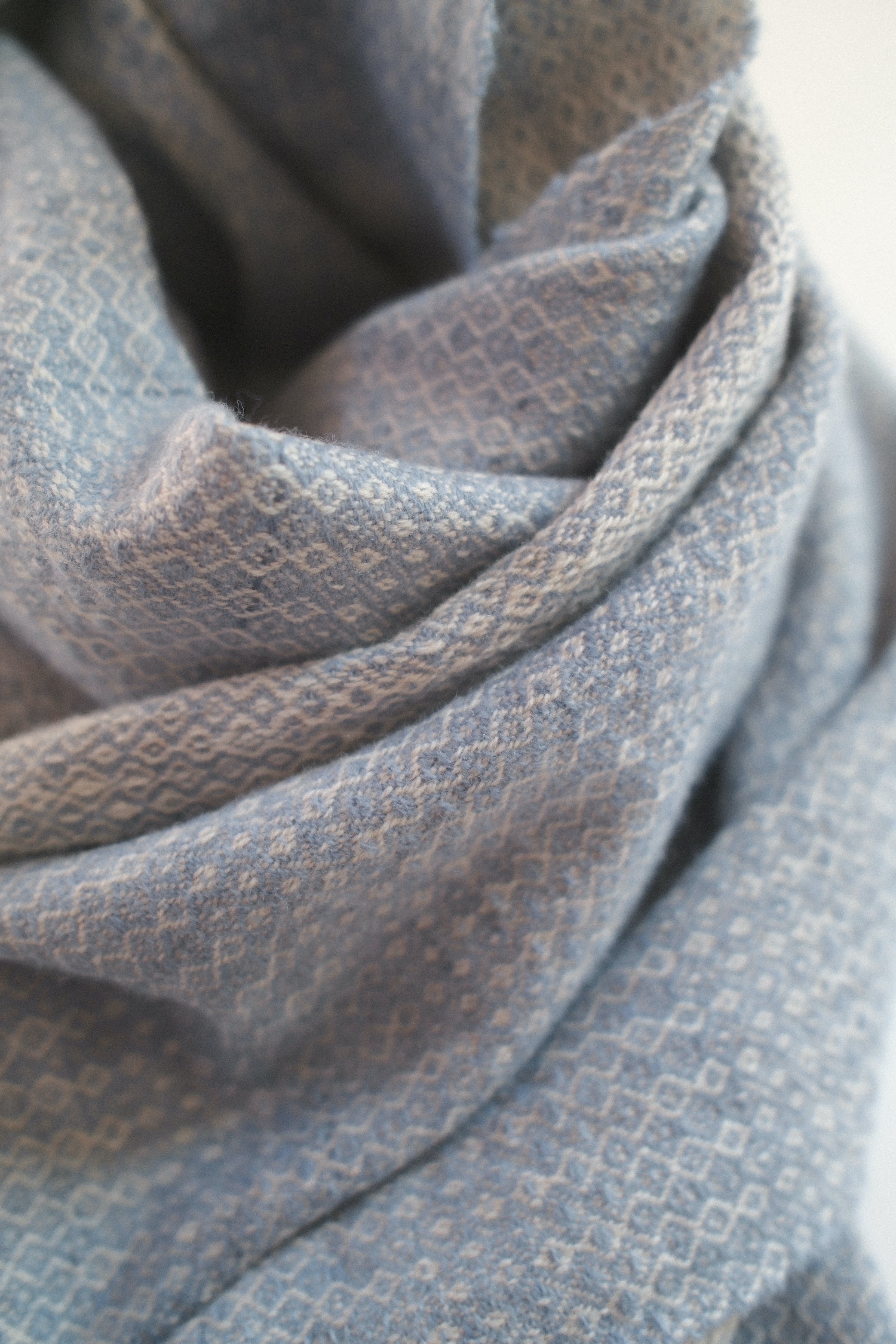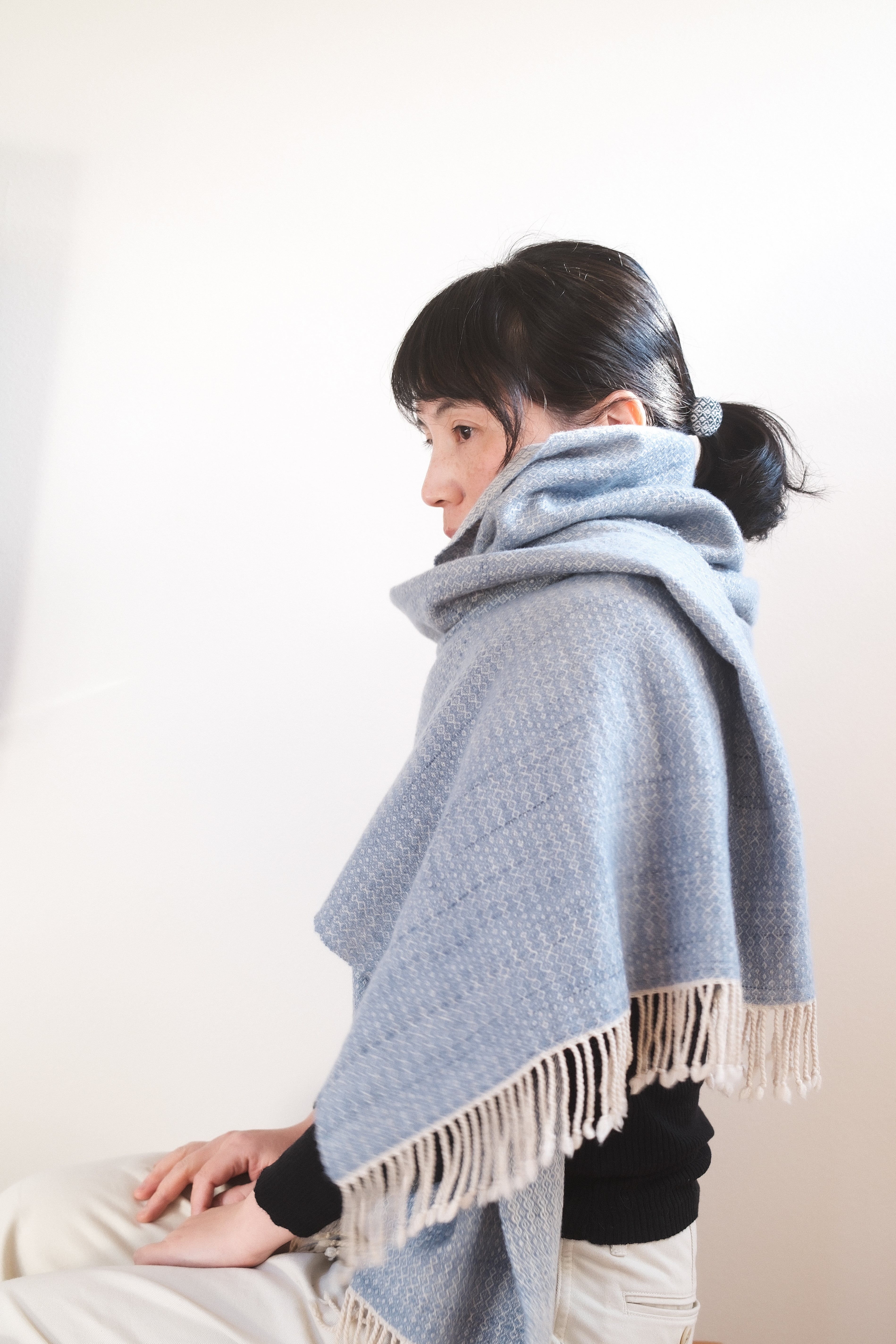 こちらはいつも製作しているシルク素材とは違い、ラムウールの糸で織り上げました。