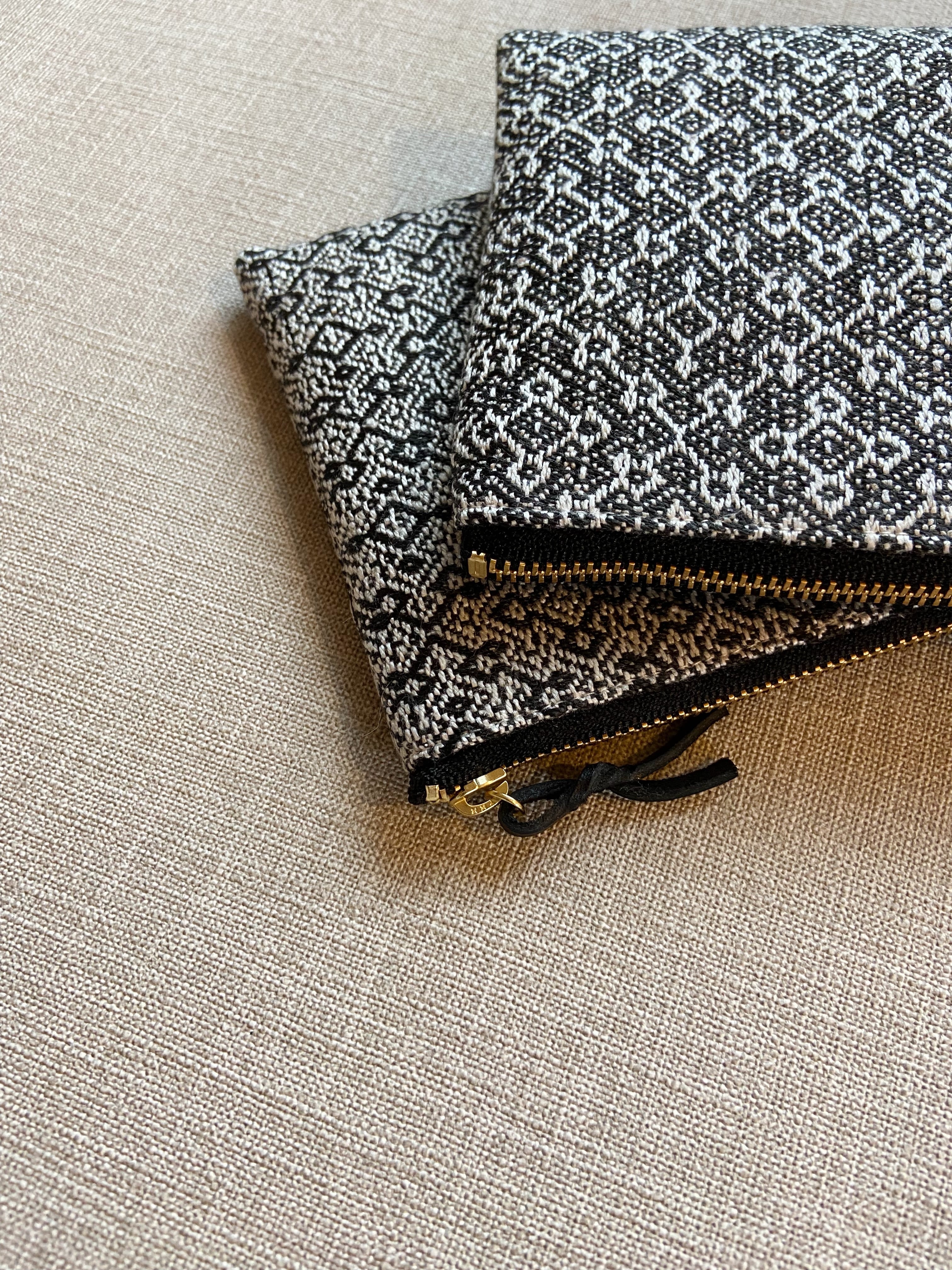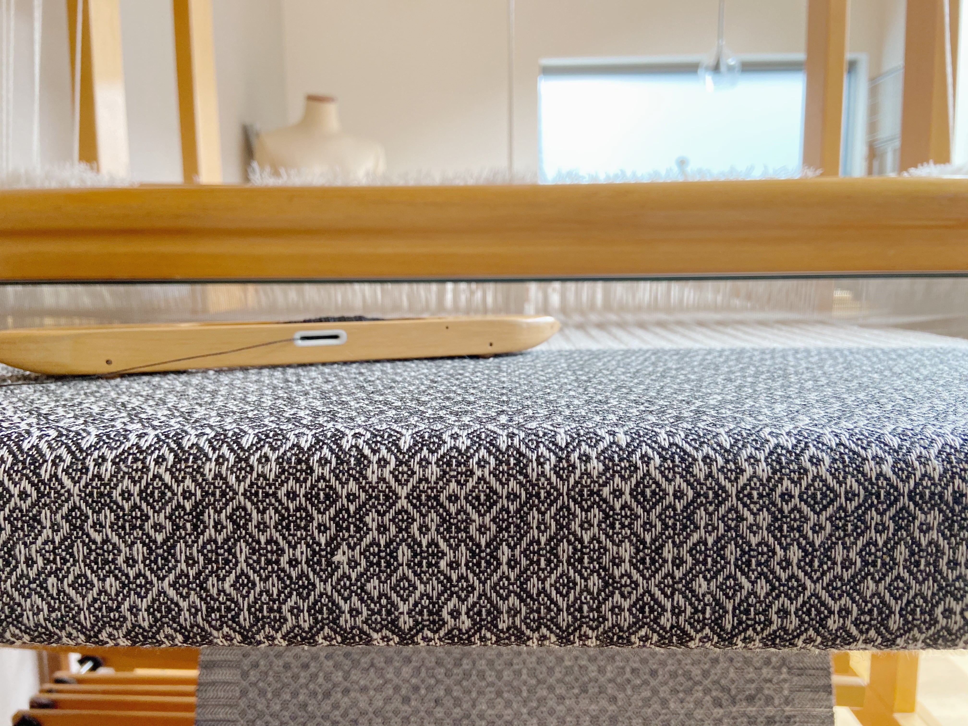 今回の六花は複雑な柄の為、沢山作ることができませんが願いを込めて1段1段丁寧に織りました。シルク特有のしなやかで品のある光沢を感じる一品は、小さな宝石を一つカバンの中に入れているような気持ちになります。