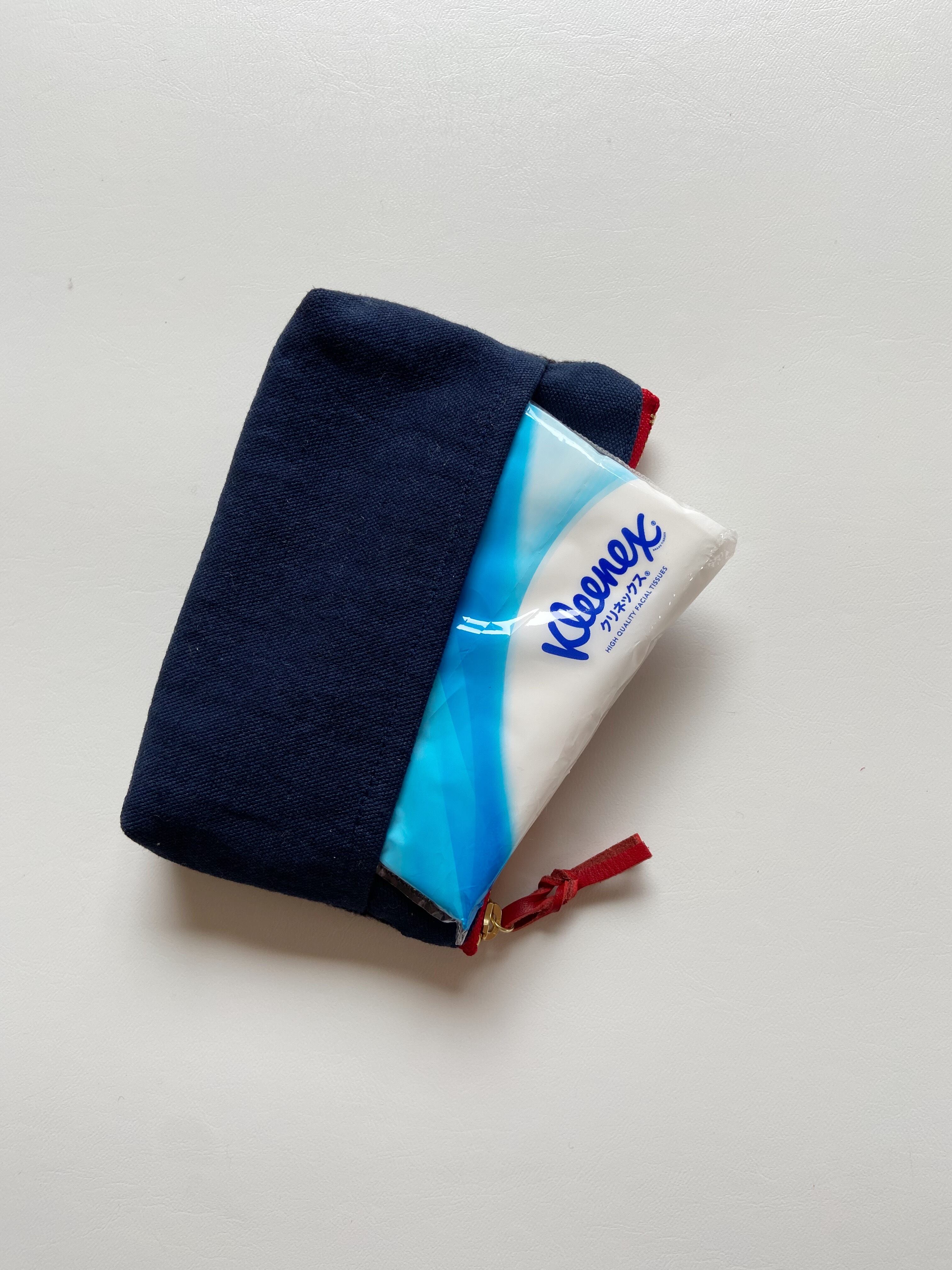 外側にポケットが一つ、ポケットティッシュサイズのものを収納することができます。